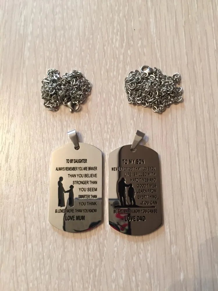 Show your children how special they are with this unique To My Son/ To My Daughter Stainless steel pendant necklace. Engrave names on the back side of the necklaces. Featuring the names of your child or either your message to them.